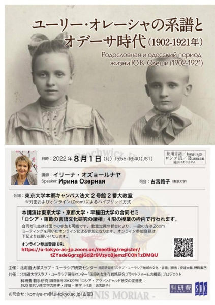 イリーナ・オズョールナさんのセミナーが東京大学本郷キャンパスにてハイブリッド方式で開催されます。皆さまのご参加をお待ちしています。