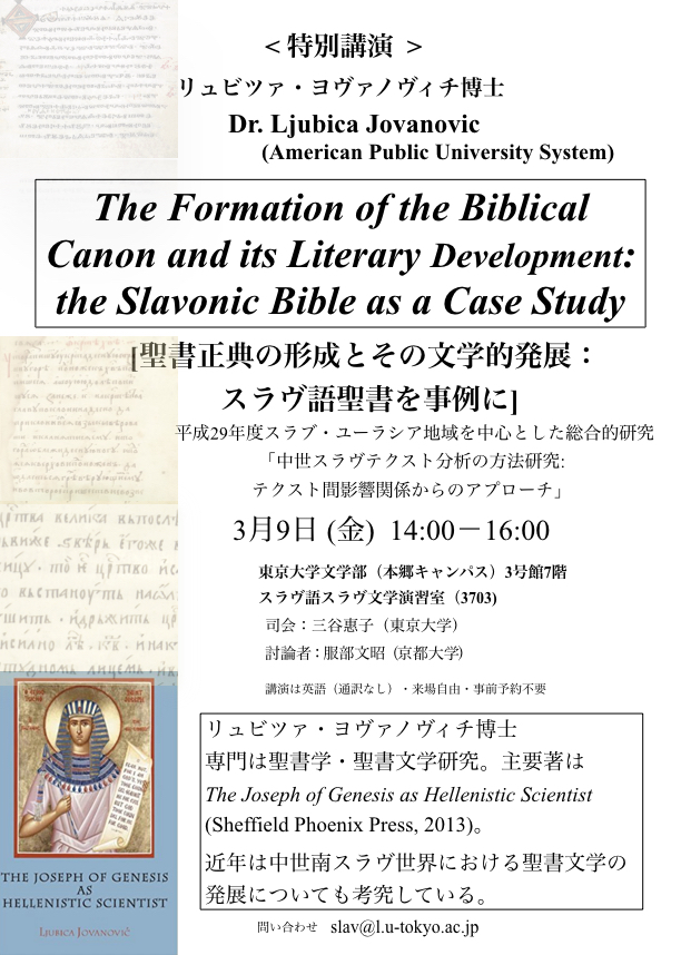 「聖書正典の形成とその文学的発展:スラヴ語聖書を事例に」(The Formation of the Biblical Canon